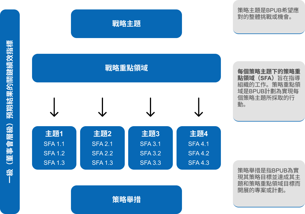 Historically, BPUB has followed a 5-year strategic planning cycle. For the 2026-2030 Strategic Plan (The Plan), BPUB has developed a comprehensive five-year strategic plan that unifies the ten (10) subordinate departmental business plans under a single framework. The Plan aims to establish clear strategic outcomes and key performance indicators (KPIs) to enhance operational efficiency, address future challenges, and drive sustainable growth.